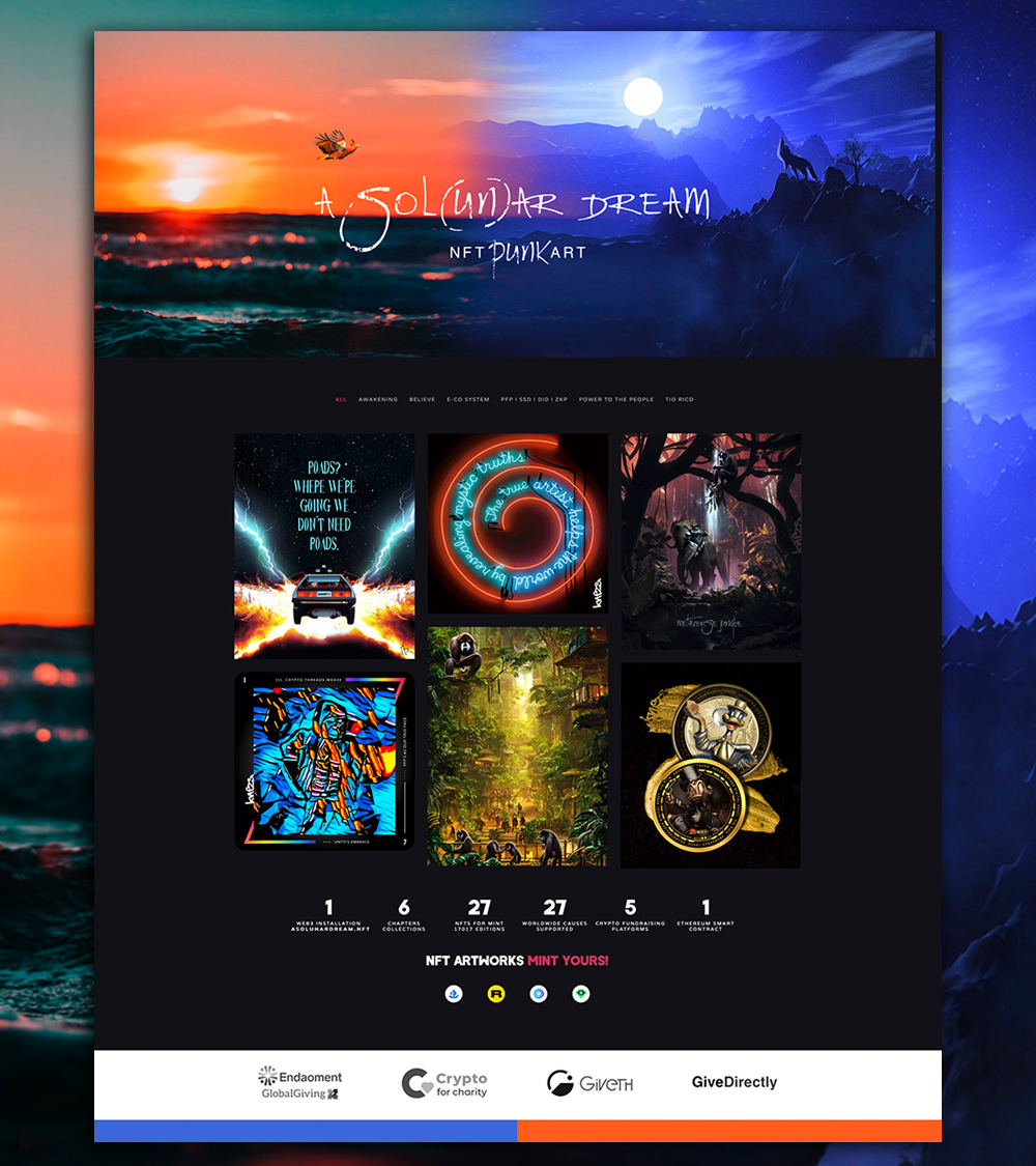 A unique NFT holds the Exhibition Site and has it's own domain.w3b as identity, URL and proof of authenticity of the Artwork.