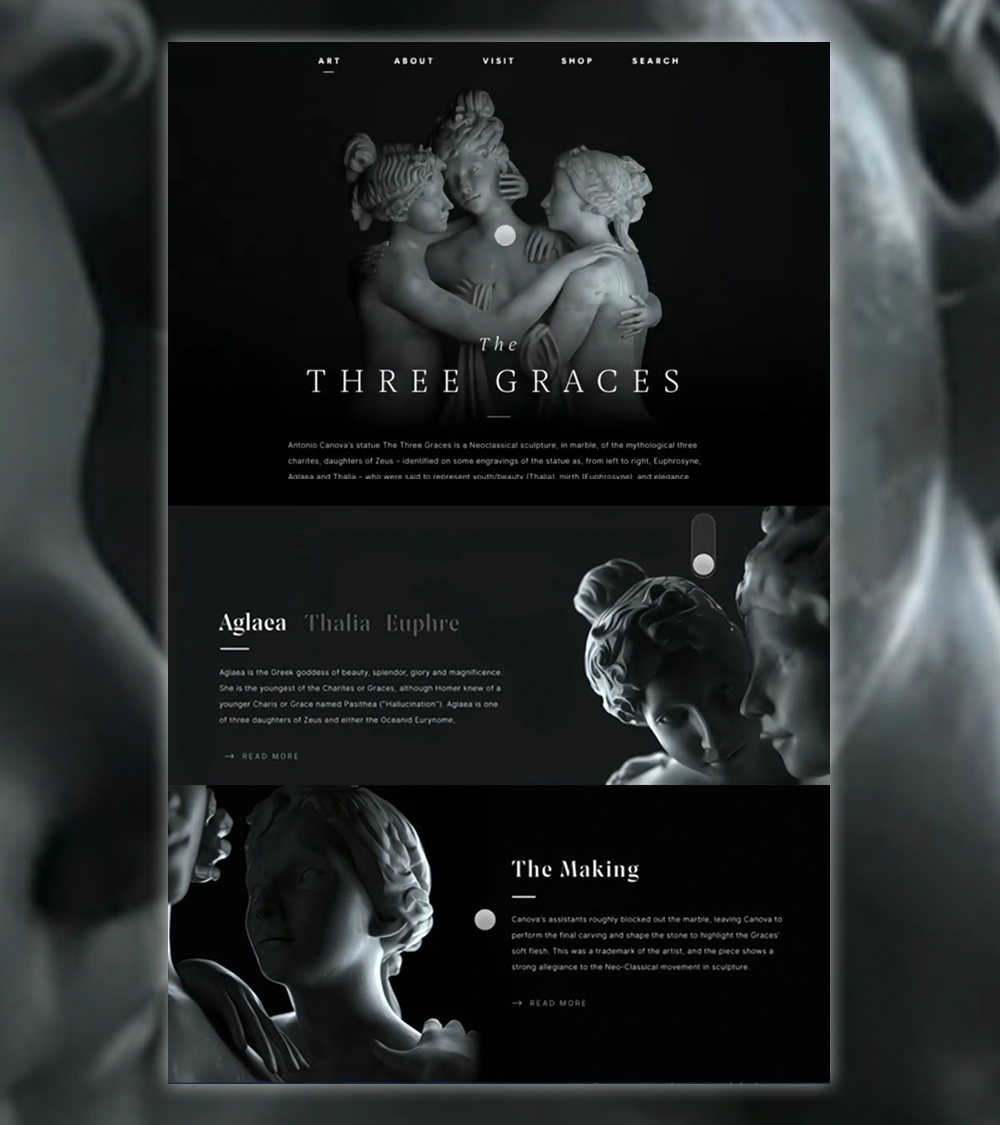 Combine visuals, sounds, texts and links in an immersive user interface. A blank canvas to create a unique experience that catch the eye of the visitor surfing your Exhibition Site.